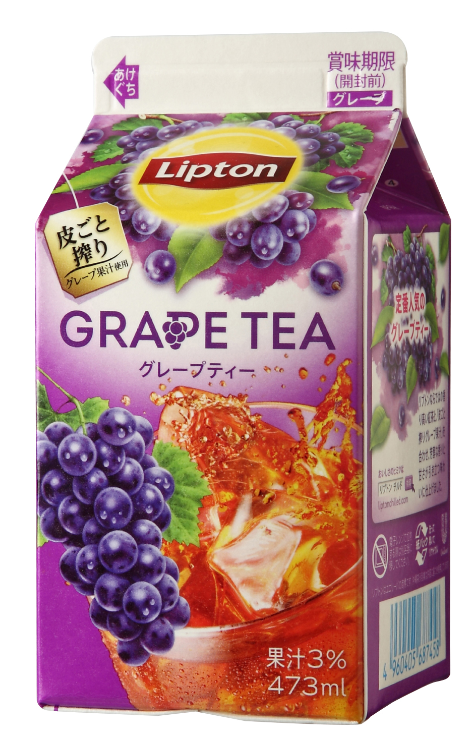 リプトンならではの香り高い 紅茶と、「皮ごと搾りグレープ 果汁」を合わせ、芳醇な香り と甘さが引き立つ王道人気 のフルーツティーです!